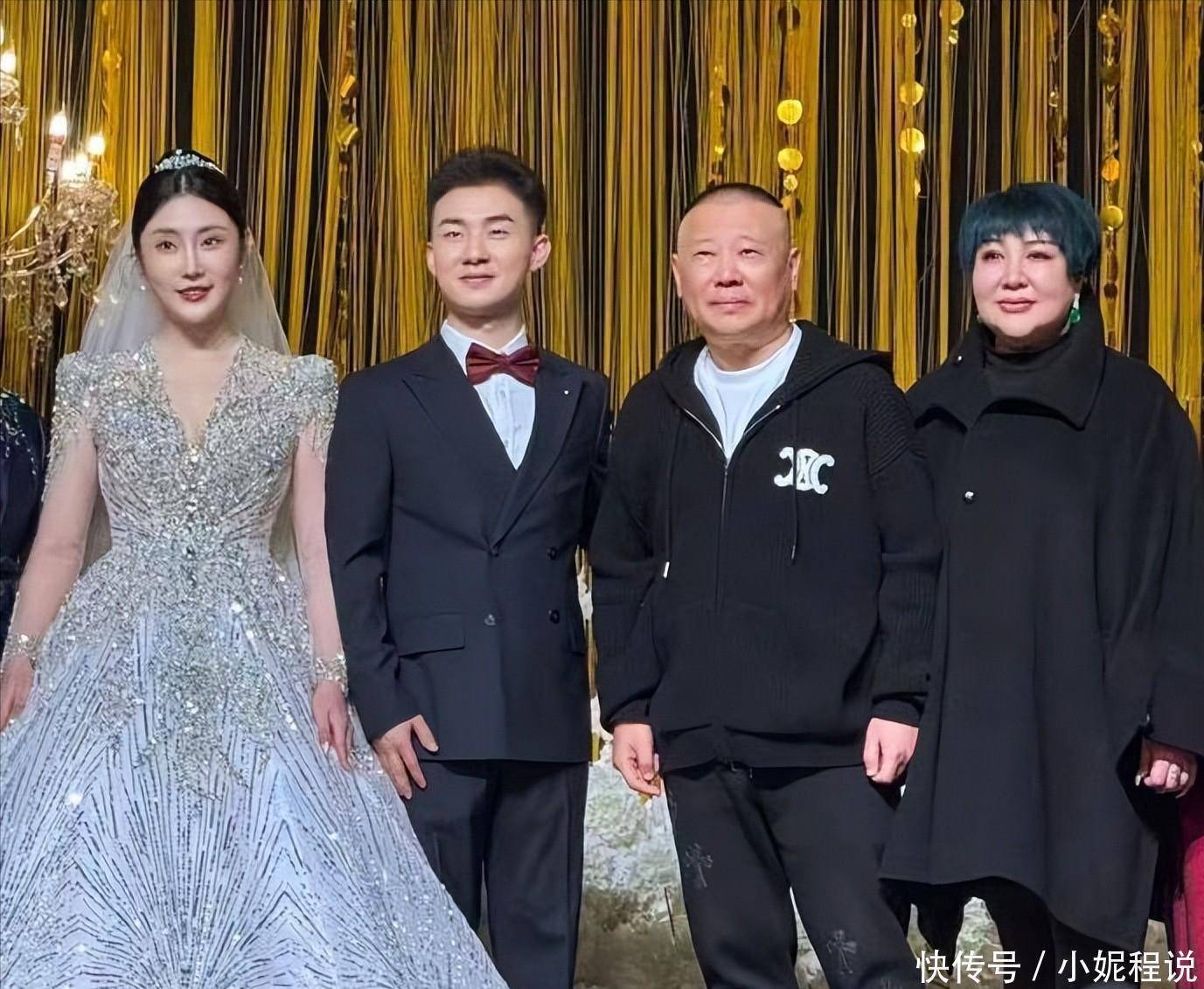 郭德纲不光自己来了,还把老婆王惠、儿子郭麒麟和小儿子郭汾阳全带上了,一家子齐刷刷到场。更难得的是,老郭亲自上台主婚致辞,这待遇可不是谁都有的。要知道前两年王九龙、张九龄结婚,他老人家都因为档期冲突没能露面。于谦也稳稳坐在证婚人的位置上,社里的骨干几乎全员到齐,排面直接拉满。